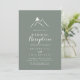 This green white silhouette mountain wedding reception invitation is perfect for a rustic post elopement party. The design features hand-painted clear mountains.