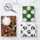These fun wrapping paper sheets for basketball players or fans feature three individual, complementary patterns -- sheet 1 features a 3D look pattern of varied size basketballs that have two recolored panels --one green and one white -- overlying the background image of abstractly oversized basketballs - sheet 2 has simple white basketball shapes on customizable green - sheet 3 has a simple mirrored pattern of green and white basketballs on customizable white - by katz_d_zynes