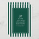 Tennis Bachelorette Weekend Itinerary Invitation | Green & White Striped Last Swing Before the Ring. Perfect for a bride who loves tennis, this modern Last Swing Before the Ring bachelorette invitation features a chic forest-green background, bold white stripes, and minimalist tennis-themed line art.