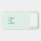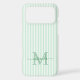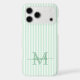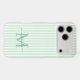 Protect your phone in style with this elegant personalized phone case, designed for a chic and feminine look. Featuring a soft green and white striped background, the back of the case showcases your monogram initial and name in a fancy script font, creating a timeless and sophisticated design.
