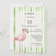 Green White Stripes Pink Flamingo Birthday Invitation