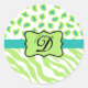 Green White Turquoise Leopard Zebra Skin Monogram Classic Round Sticker