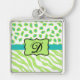 Green White Zebra Leopard Skin Monogram Initial Keychain