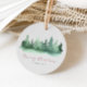 This green wild forest Christmas tree ornament is perfect for a rustic merry Christmas holiday celebration. The design features a watercolor green wild forest pine trees.