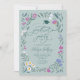 Whimsical graduation party invitation card featuring hand drawn illustration of meadow wildflowers in green colours.