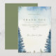 Green winter pine trees wedding table thank you card