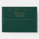 The bride and grooms names and return address are show in gold elegant script on these forest green wedding invitation envelopes. To edit the text click on the personalize button.