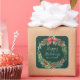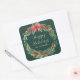 Green wreath personalized Christmas square sticker. Easy to change the text.