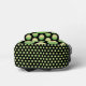 Mod style green and yellow dots of varying sizes on a black background. Name in a monogram circle on the front, in script font. Customize by adding your own name.
