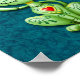 This adorable green kitten design is decorated with swirls and dot patterns. Yellow flower pedals circle the pure black eyes in the tradition of the Day of the Dead sugar skulls. The cat is sitting down, looking forward with its tail waving in the background. The oversized head sits on a tiny body which creates a playful, cartoon like appearance. A five point star sits in the middle of the kitten’s forehead while a bright red and yellow heart appears in the centre of the chest. This cute little cat is a fun and stylish design inspired by the beautiful patterns of Day of the Dead sugar skulls.