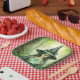 These party plates feature a watercolor whimsical witch holding a green crystal
