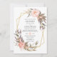 Trendy floral wedding invite with gold geometric frame designed to be quickly and easily customized to your event specifics.