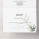 Eucalyptus and other greenery with gold glitter accents. The RSVP is perforated making it easy to tear off and send back. The postcard is the correct size for sending via USPS at the lower postage pricing, and the back flap that overlays the postcard is large enough to cover the return address and stamp sections to avoid confusion with mailing. Personalize with your own information. If you need help with this invitation or for custom requests you need my help with, do not place this merchandise in your cart. Instead, email me your request at shutterbug600@yahoo.com. Please Note: I can only help with the design - all shipping and printing is handled by Zazzle and questions concerning your order should be directed to Zazzle support: SUPPORT: https://help.zazzle.com/hc/en-us/articles/221463567-How-Do-I-Contact-Zazzle-Customer-Support-. I do not have access to your account and can't make changes once you've placed your order. Also, CHAT is not live, but I typically answer within 24 hours.