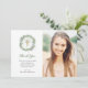 This simple and minimalist Confirmation thank you card features an elegant watercolor wreath full of rustic greenery and foliage, with a faux gold cross and subtle green watercolor splash in the centre, on a white background. Your photo is also featured.
