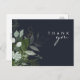 Greenery and Gold Leaf Script Dark Navy Thank You Postcard
