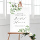 Welcome guests to your event with this customizable bridal shower welcome sign. It features watercolor greenery and white flowers. Personalize this custom bridal shower sign by adding your details. This greenery bridal shower sign is perfect for spring and winter bridal showers. Matching items are available.