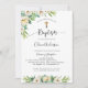 Greenery and White, Gold Yellow Floral Baptism Invitation