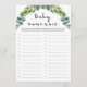 How many baby names do you know? Play Baby Name Race with this gender neutral baby shower game with watercolor green leaves.