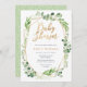 Invite your friends and family to celebrate your baby shower with this gorgeous watercolor greenery leaves terrarium gender neutral Baby Shower Invitation and faux gold foil handwritten text.