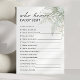 Introducing our enchanting modern greenery baby shower who knows daddy best card, featuring delicate gold accents amidst the lush foliage of sage eucalyptus leaves and fern motifs. Its minimalist design, infused with botanical elements, evokes a sense of bohemian allure, creating an enchanted atmosphere. Dive into the serene beauty of watercolor greenery as you embark on a journey of celebration filled with joy. Please feel free to ask any questions regarding the product's design; we are happy to help!