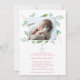 VG Invites pink and greenery photo baptism invitation frames your religious baby blessing event details with painted watercolor spring greens. Additional greenery and a lovely scripture adorns the back of your invite. A modern yet organic choice your girl's Baptism, bautizo or bautismo. Designed by Victoria. To see more visit www.zazzle.com/vginvites