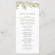 Our chic botanical wedding program features your ceremony details in rich olive green, accented at the top with a graceful sprig of green watercolor leaves. Reverse side lists the members of your wedding party with easily editable text fields. Coordinates with our Greenery watercolor botanical wedding invitation collection.