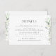 Boho Sage Greenery Botanical Olive Elegant Simple Wedding Details Enclosure Card. Bohemian-style arranged botanical minimalist Details Card with elegant and simple boho sage green botanicals in hand-printed watercolor. The green watercolor background is gorgeous for boho weddings and green weddings. Editable Details Card for spring, summer, fall (autumn), and winter weddings.