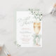 This elegant Greenery Champagne Bridal Shower Invitation features soft watercolor greenery, eucalyptus foliage, and a delicate coquette green bow for a fresh and romantic look.