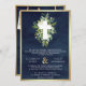 Greenery Cross Navy All in One Catholic Wedding Invitation