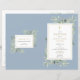 Featuring delicate watercolor greenery leaves on a dusty blue background and an elegant gold crucifix, this chic baptism or christening program can be personalized with your special information. Designed by Thisisnotme©