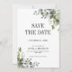 Elegant greenery Photo on Back Save the Date card with watercolor eucalyptus leaves and soft botanical foliage. Featuring a modern emerald and sage green palette, this classy design is perfect for spring or summer weddings. A timeless choice for couples who love natural, romantic, and foliage-inspired wedding stationery. Coordinates beautifully with matching invitations and RSVP cards from the same collection.