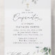 Invite friends and family in style and set the tone for your special day with this elegant confirmation invitation. Design features eucalyptus leaves and greenery on white background.