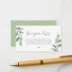 This is the Modern casual Greenery eucalyptus, in Dark grey script, with green watercolour background at the back page , Script minimalism, typeface font, Wedding Enclosure Card.