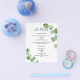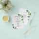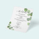 A modern, elegant wedding details/program/timeline. A white background decorated with eucalyptus greenery, sprigs. Personalize and add your names and wedding details. Black coloured letters.