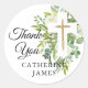 Greenery Floral Botanical Cross Elegant Baptism Classic Round Sticker