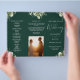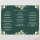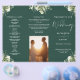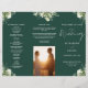 This elegant wedding trifold program features floral greenery on an emerald green background. Designed by Thisisnotme©