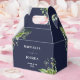This elegant greenery botanical floral wedding favour box can be personalized with your information in chic typography on a navy blue background. Designed by Thisisnotme©