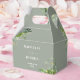 This elegant greenery botanical floral wedding favour box can be personalized with your information in chic typography on a sage green background. Designed by Thisisnotme©