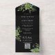 Greenery Floral QR Code Black And White Wedding All In One Invitation