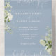 Greenery Floral Script Dusty Blue QR Code Wedding All In One Invitation