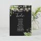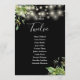 These elegant botanical greenery floral string lights wedding table numbers can be personalized with your guests' seating plan set in chic typography on a black background. The cards are printed on the front and back (double-sided). Designed by Thisisnotme©