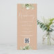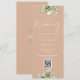 A greenery floral wedding invitation featuring elegant calligraphy script typography and your wedding website QR code on a tan background. Designed by Thisisnotme©