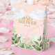 An elegant baby shower favour box featuring greenery foliage and chic gold typography on a blush pink background. You can personalize with your own thank you message under the lid. A perfect way to say thank you to your guests! Designed by Thisisnotme©