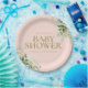 Greenery Foliage Blush Pink Gold Baby Shower Paper Plate