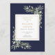 An elegant modern navy blue and gold personalized botanical watercolor greenery order of service funeral memorial program. Designed by Thisisnotme©