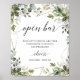 Greenery foliage leaves gold frames open bar sign