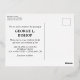 Gold foil photo funeral invitation postcard with elegant greenery framing a photo of your loved one. White and gold memorial service invitation postcard personalized with an oval photo of your loved one, and their name in gold foil.