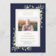 A navy blue botanical watercolor greenery personalized order of service funeral memorial program. Designed by Thisisnotme©