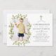 Wild woodland forest confirmation invitation featuring leaves adorning a gold geometric frame. A portrait shaped photo is recommended.
