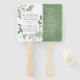Organic inspired greenery wedding program fans with geometric frame designed to be quickly and easily customized to your event specifics.
